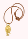 Adjustable necklace with black leather rope and a Maxi Olmeca Head with mini charms. Brass, gold plated with 1 micron of 24kt gold and a coat of transparent ceramic lacquered.