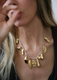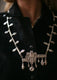 Maxi necklace inspired by "Mitla" special shapes that combine with an Olmeca Head and the Mayan sacred corn. Brass gold plated 1 gold micra and ceramic lacquered.